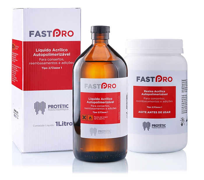 Resina Acrílica Autopolimerizável incolore pigmentada,utilizada em concertos,adições, reembasamentos de prótese dentária e prótese parcial removível.